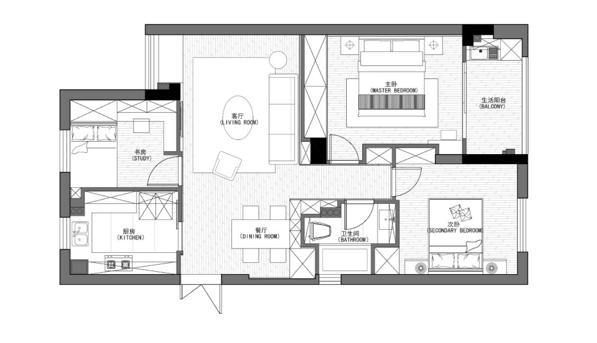 沁園-90平米-現代極簡風格-裝修效果圖